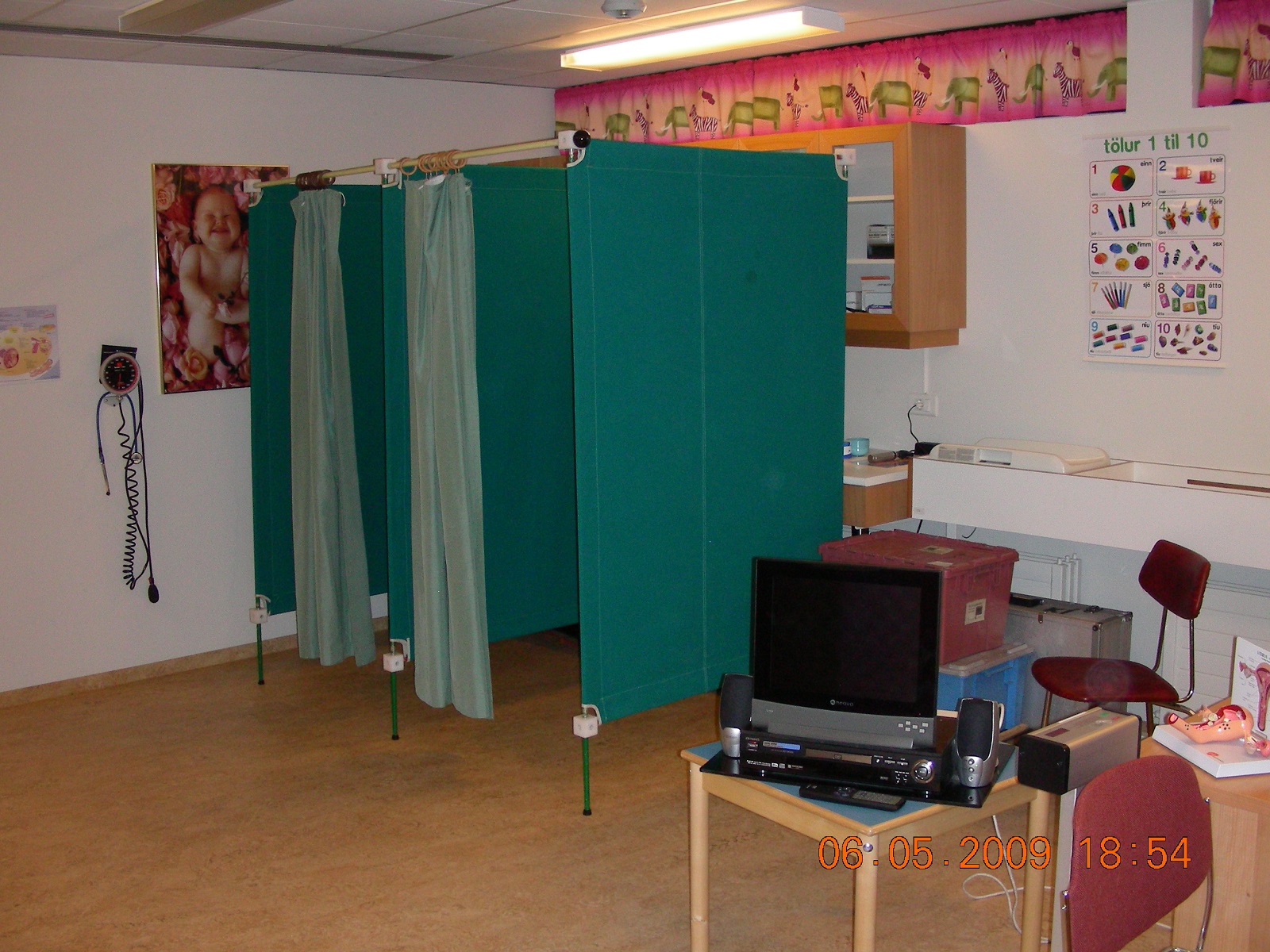 Við höfðum hannað ferða búningsklefa úr segldúk og látið sauma hjá Seglagerðinni. Þeir reyndust nokkuð vel og voru notaðir ásamt endurbættum útgáfum árum saman. Hver kona fékk körfu fyrir þau föt sem hún þurfti að afklæðast og hafði því fötin hjá sér í gegnum ferlið. Fyrir utan að veita konunum smá öryggistilfinningu, þýddi þetta að nýting á skiptiklefum var góð þvi næsta kona gat alltaf notað lausan klefa.