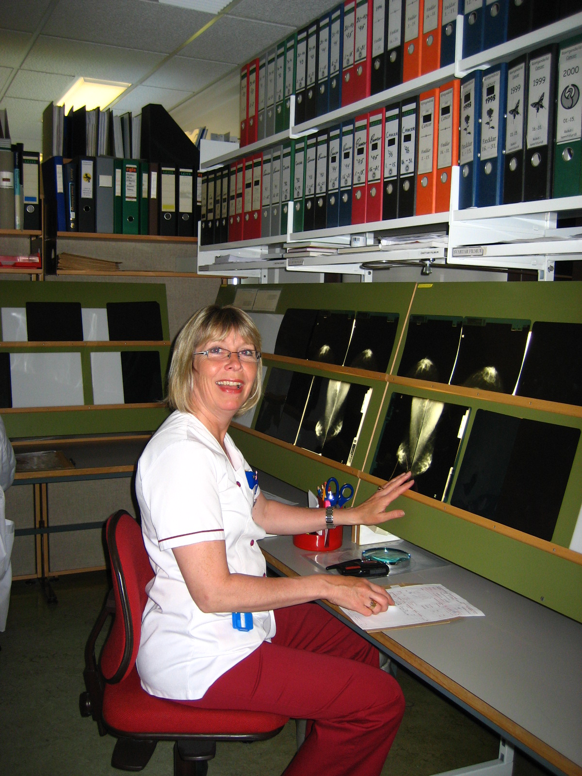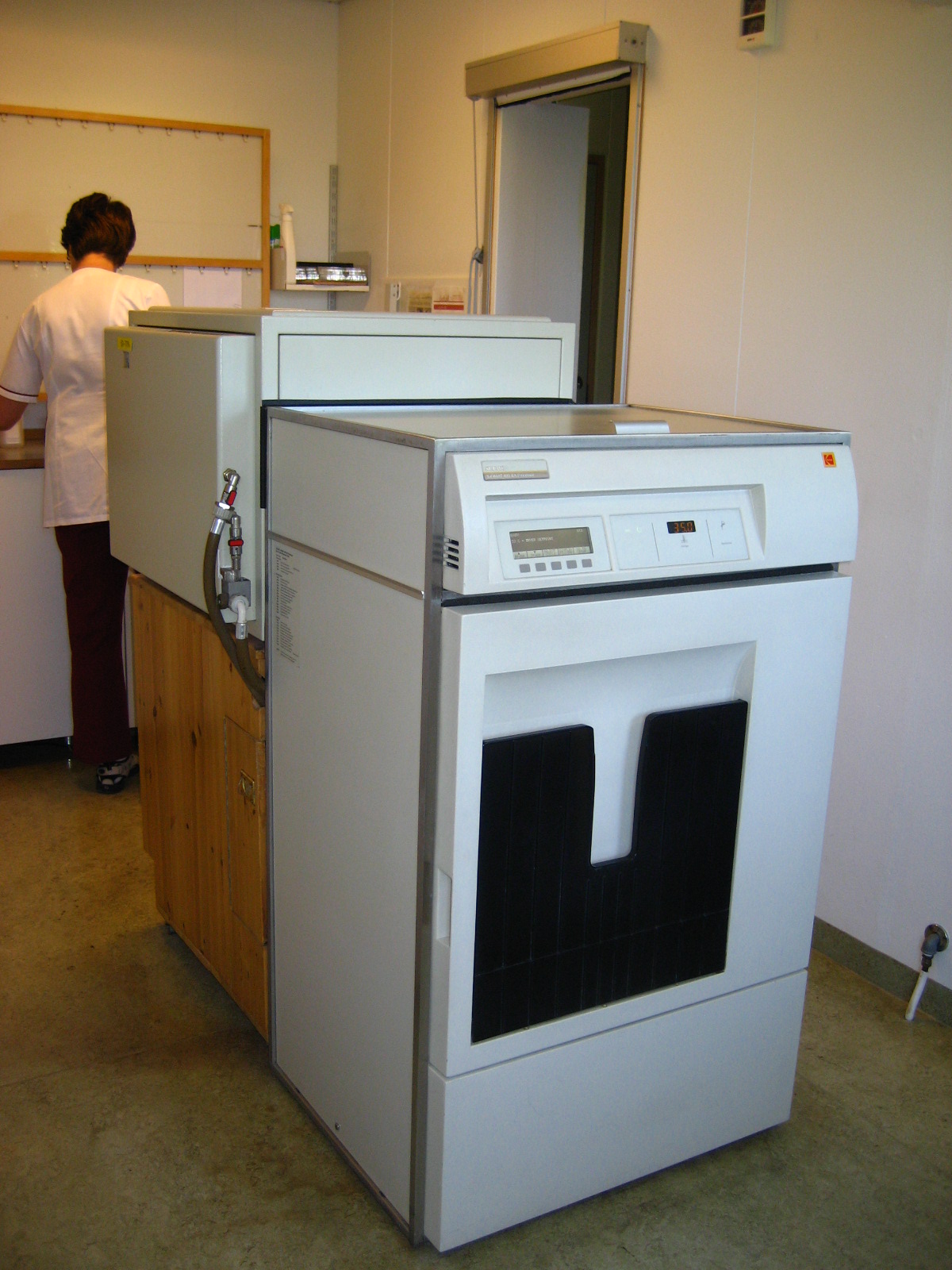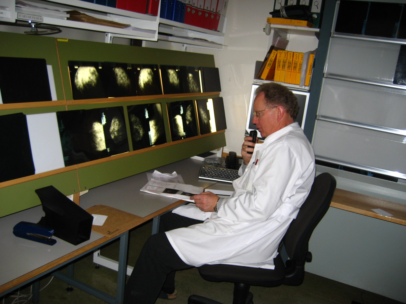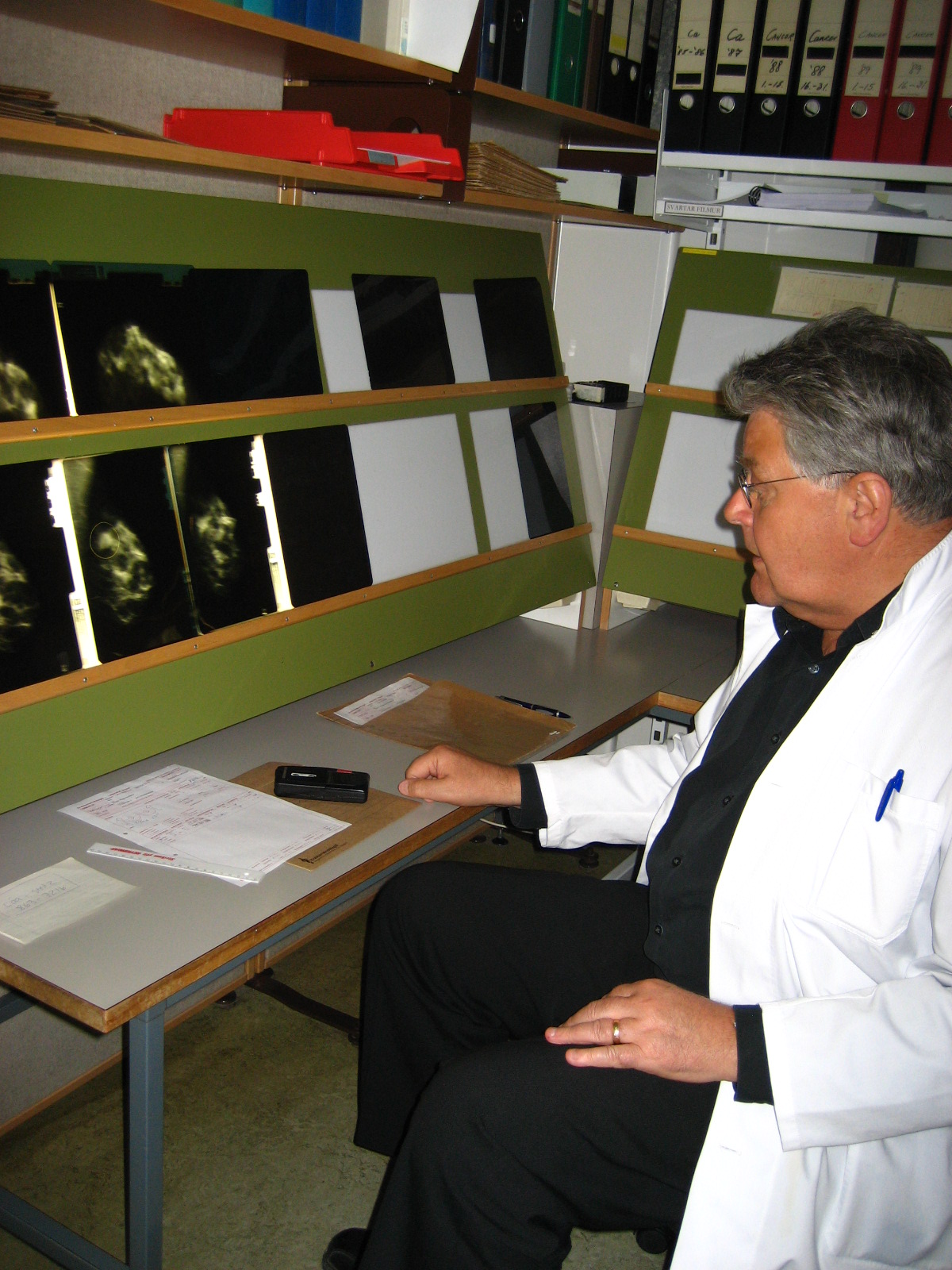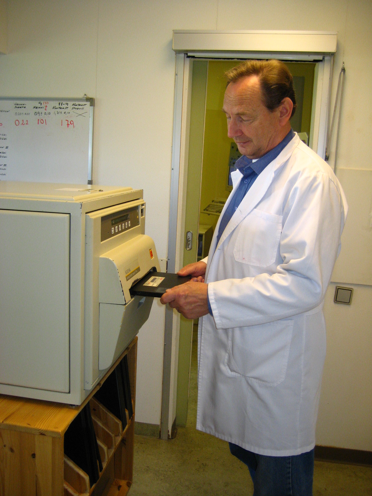 Við prófuðum líka að framkalla á staðnum í borðframköllunarvél, eins og sumstaðar tíðkaðist úti í Evrópu á þessum tíma. Það var seinlegt og krafðist mikillar viðbótar vinnu, auk þess sem nánast var útilokað að tryggja jöfn framköllunargæði. Því var ákveðið að allar myndir yrðu framkallaðar hjá Krabbameinsfélaginu í Reykjavík.